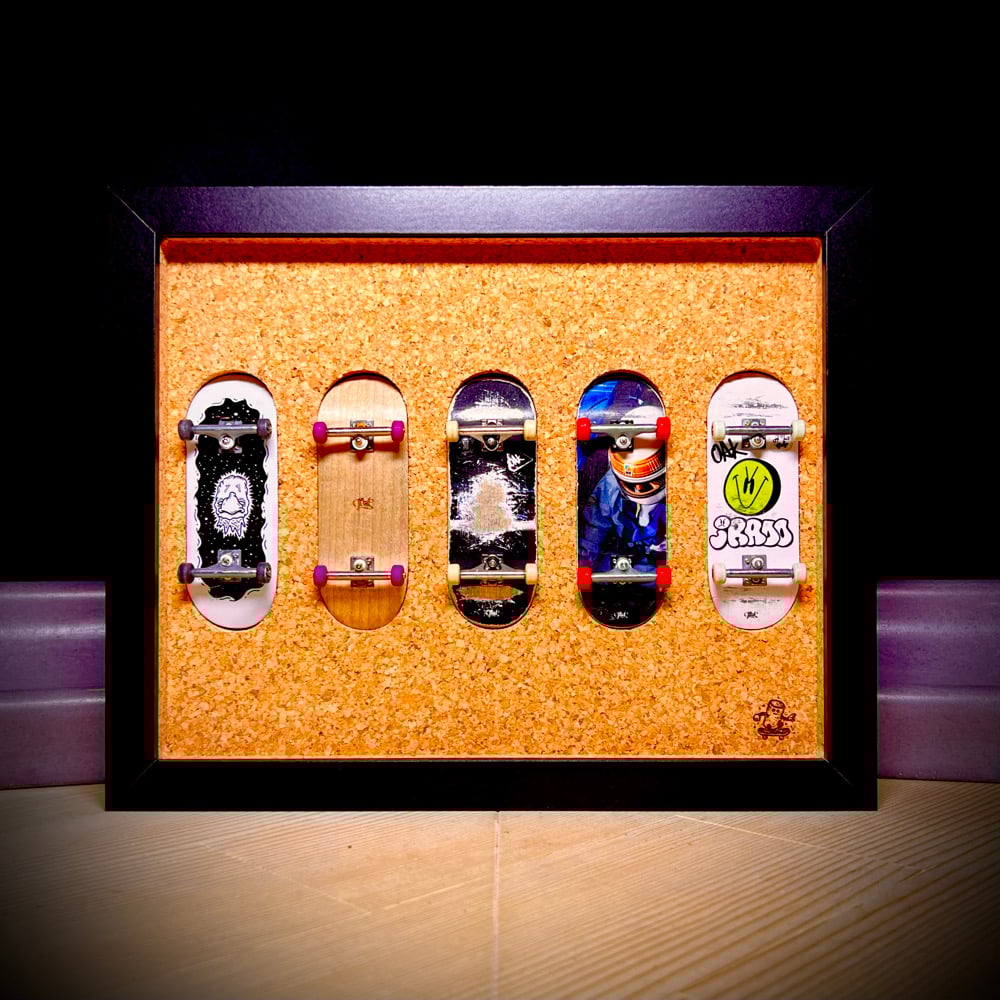 Display up to five of your favorite fingerboards with the BoardCorks 9" x 11" display frame. Hang it on a wall or place it on your spot, shelf, desk, or any other flat surface.